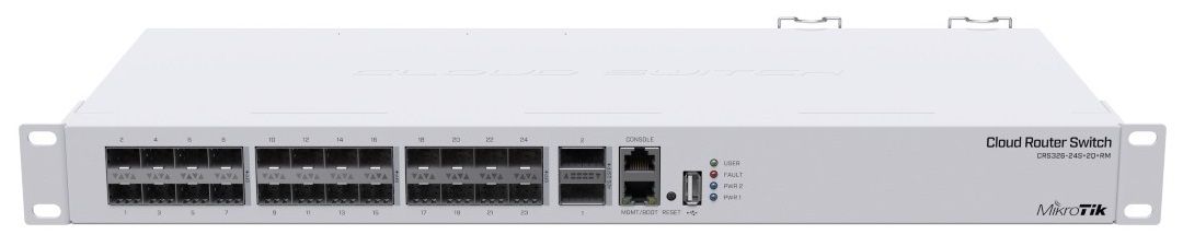 MikroTik CRS326-24S+2Q+RM - новий світч операторського класу з 40 Gbps QSFP+ портами для швидкісних оптоволоконних мереж. Якщо ви працюєте зі значним обсягом даних - наприклад, з доступом до Інтернету або з величезним центром обробки даних - це ідеальне оновлення для вашої системи.