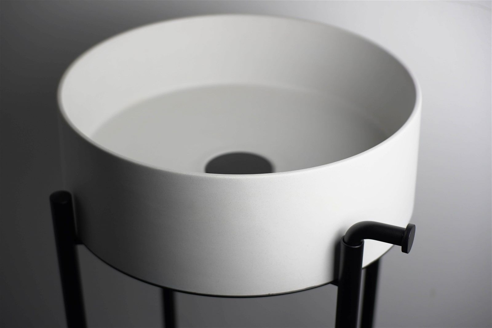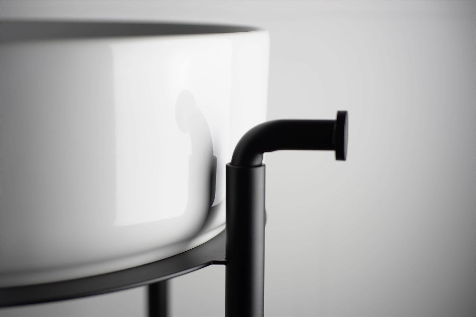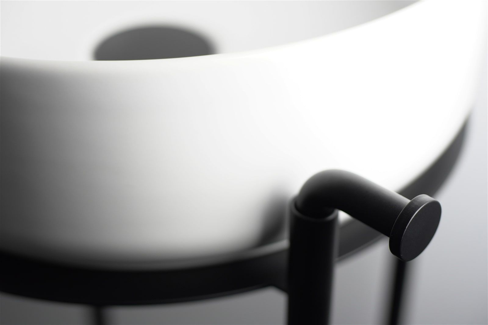 Мінімалістський дизайн підкреслює плавні лінії умивальника, надаючи ванній кімнаті легкість і витонченість. Міцна конструкція консолі забезпечує її стійкість, а матове оздоблення буде доречним як в елегантній обстановці, так і в необробленому інтер'єрі в стилі лофт. Меблі додатково оснащені такими практичними рішеннями, як поличка для косметики або гачок для рушника.