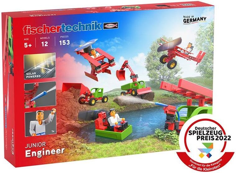 Великий стартовий набір для дітей від 5 років включає дванадцять різних транспортних засобів, літаків і кранів. Інструкції по будівництву, зручні для дітей і пропонують легке ознайомлення з системою fischertechnik. В ранньому віці дітям важливо вивчати технології – вбудований сонячний мотор і можливість розпилення води за допомогою пневмоциліндра дають молодим науковцям перший веселий погляд на світ технологій. У набір також входить Нік, фігурка fischertechnik, яка простягає руку допомоги інженерам завтрашнього дня.