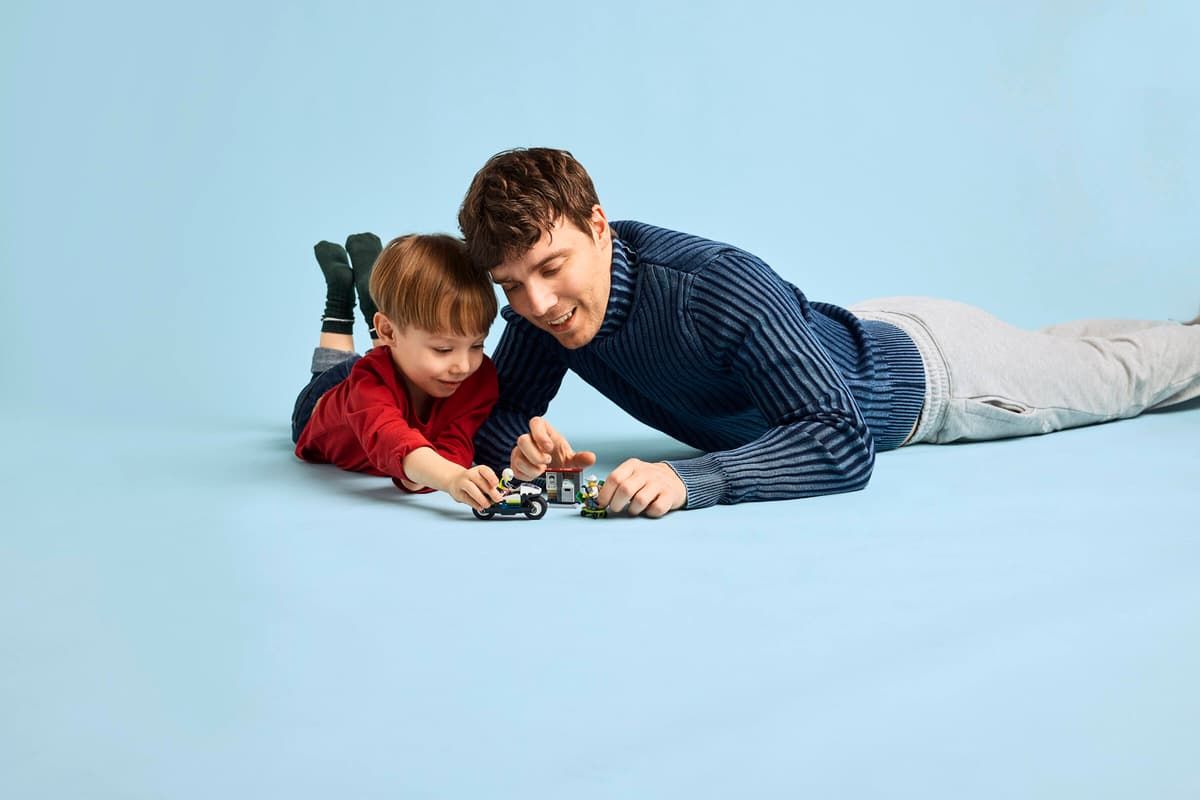 Захопливе переслідування на поліцейському мотоциклі LEGO City (60455) — динамічний набір для дітей від 4 років! Крутий мотоцикл з широкими шинами, скейтборд для втечі злодіїв і міні-банкомат, що відкривається з іграшковою банкнотою — ідеально для швидких пригод і творчих історій!