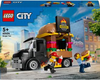 Набір LEGO® City Фургон з бургерами (60404) для дітей від 5 років — справжня знахідка для юної уяви. Фургон із величезним бургером на даху має знімну мобільну кухню, обладнану зоною для приготування їжі, соусами та віконцем для обслуговування, що відкривається й демонструє вивіску з бургером, приготованим на грилі. У комплект також входять мініфігурка продавця та мініфігурка покупця з кохлеарним імплантом.