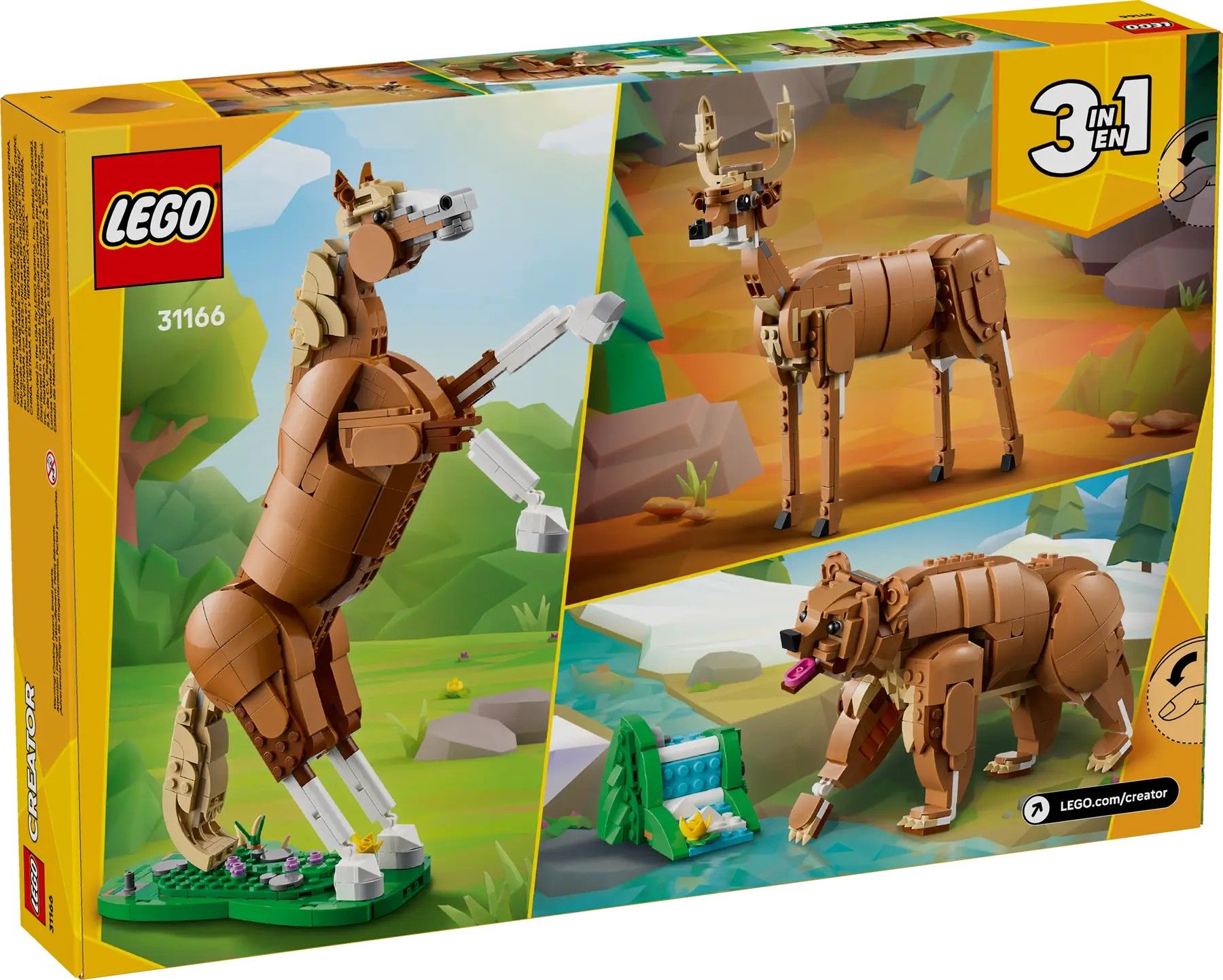 Дівчатка й хлопчики віком від 9 років, які люблять тварин, можуть насолоджуватися веселими історіями завдяки конструктору іграшкової тварини «Прекрасний кінь» (31166). Він може рухати головою, шиєю, тазом, кінцівками, хвостом і одним з колін, а також має підставку у вигляді трави, на якій діти можуть демонструвати його в 3 різних положеннях: стоячи на 3 або 4 кінцівках або ставши на диби.