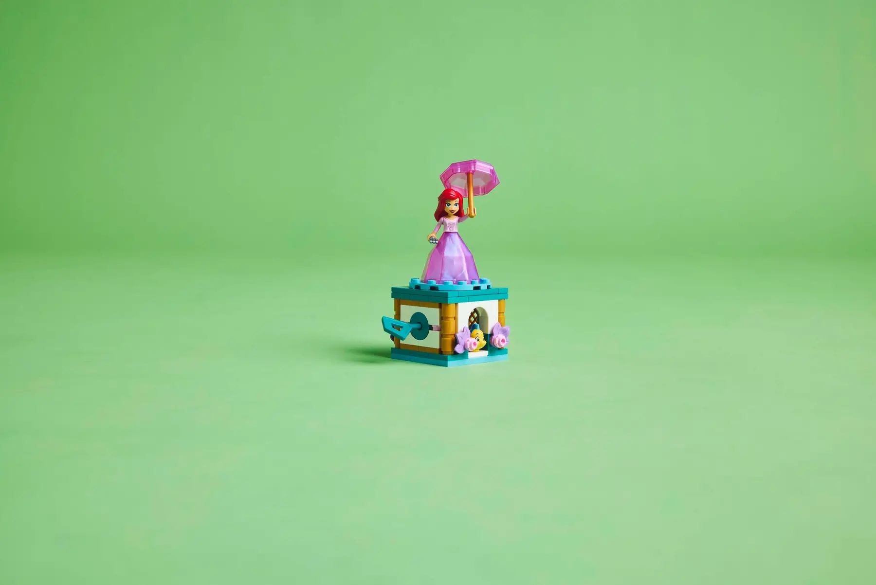 Зачаруйте дітей і шанувальників диснеївської Русалоньки віком від 5 років завдяки цьому конструктору LEGO® Disney Princess Кружляння Аріель (43259), до якого входить підставка з кубиків із поворотною пластиною, ключ, виделка й місце для Флаундера, а також «діамант» з боків.