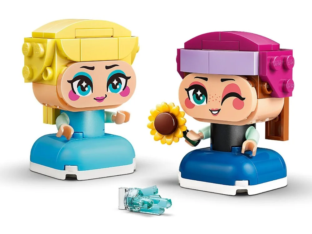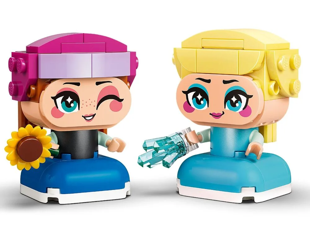 LEGO Disney 43284 — це милий міні-набір для дітей від 5 років з двома рухомими мініпринцесами: Анною та Ельзою з мультфільму «Крижане серце». Кожна фігурка має рухомі руки, може тримати аксесуар (крижана блискавка для Ельзи та соняшник для Анни) і ідеально підходить для сюжетних ігор чи милої експозиції на полиці. З 65 деталей діти швидко збирають улюблених героїнь і розвивають уяву через історії Disney Frozen. Додаток LEGO Builder з 3D-інструкціями робить процес простим і веселим. Чудовий міні-подарунок на день народження чи просто так для фанатів принцес.