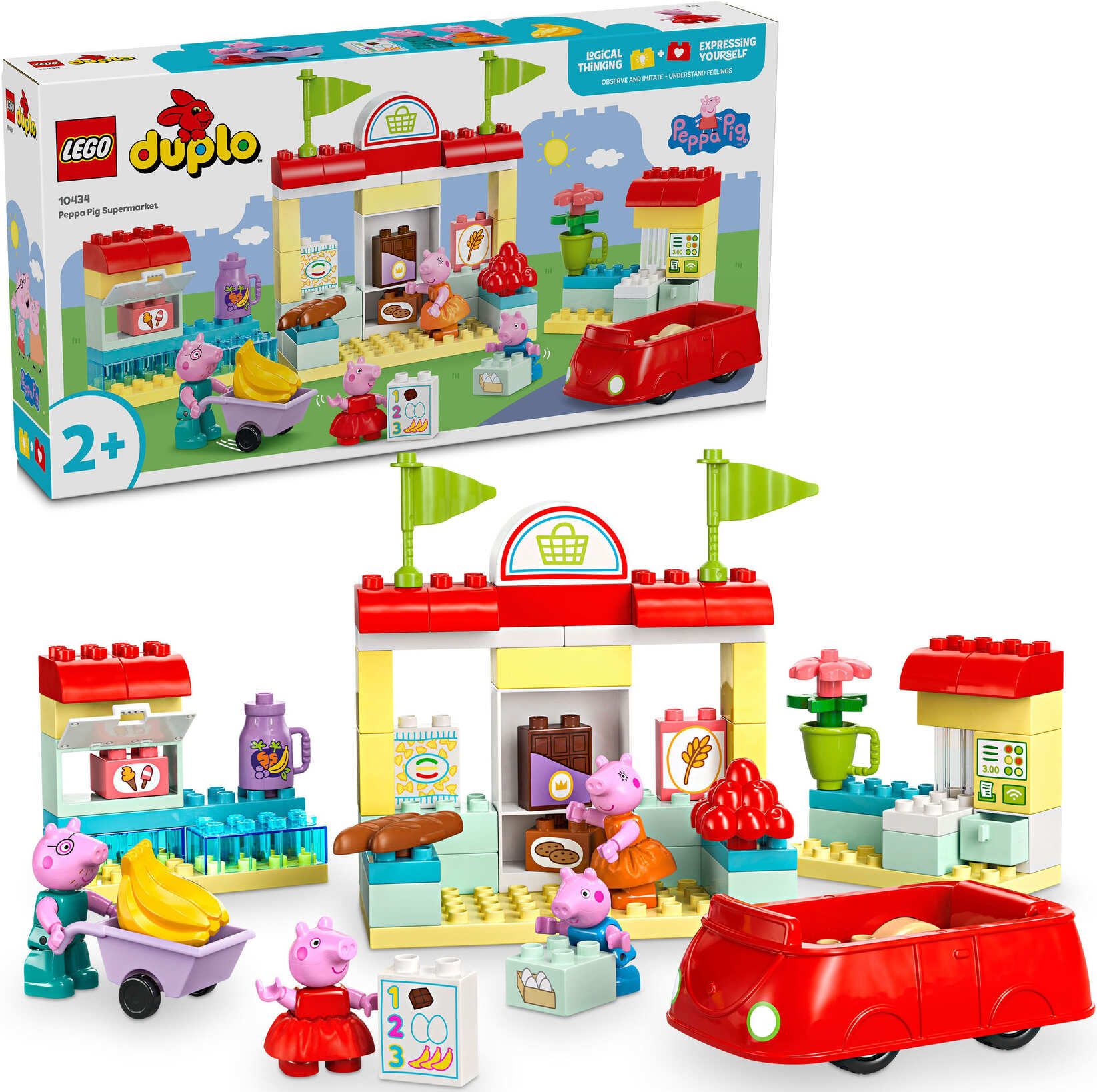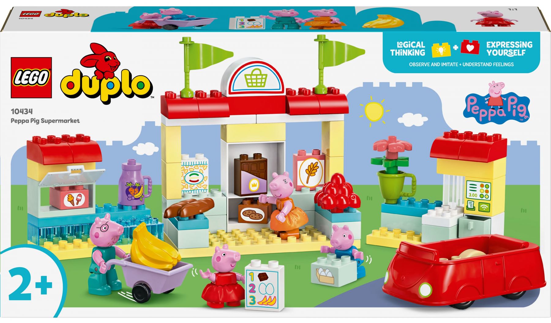 Допоможіть дівчаткам і хлопчикам від 2 років розіграти подорож до магазину разом із іграшковим набором LEGO® DUPLO® Peppa Pig Супермаркет (10434). Малюки дошкільного віку можуть уявити себе частиною родини, вирушаючи за покупками в культовому червоному автомобілі з мультфільму.
