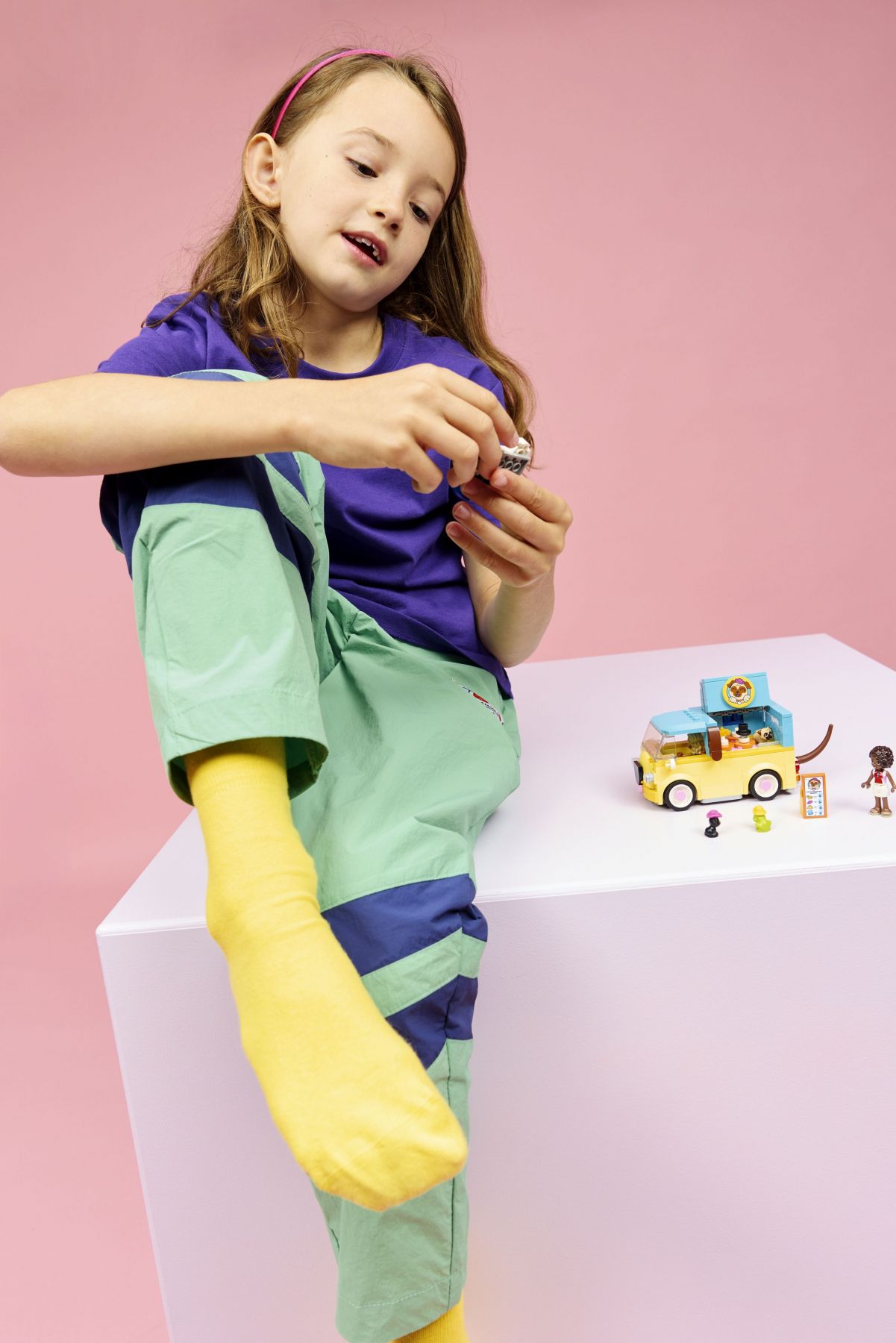 LEGO Friends 42678 — набір для дітей від 6 років із фургоном у формі мопса, що махає хвостом під час руху, двома мініляльками, фігурками кошеняти, собаки та жаби. У комплекті аксесуари для тварин: різні капелюхи (дощовий, ковбойський, циліндр, вінок з квітів), талісман у вигляді кістки та інші деталі для показу мод для улюбленців. Діти можуть розігрувати сюжети про завантаження фургона, демонстрацію аксесуарів та пригоди з тваринами. Додаток LEGO Builder з 3D-інструкціями спрощує процес складання. Підходить для розвитку уяви через рольові ігри про тварин та моду.