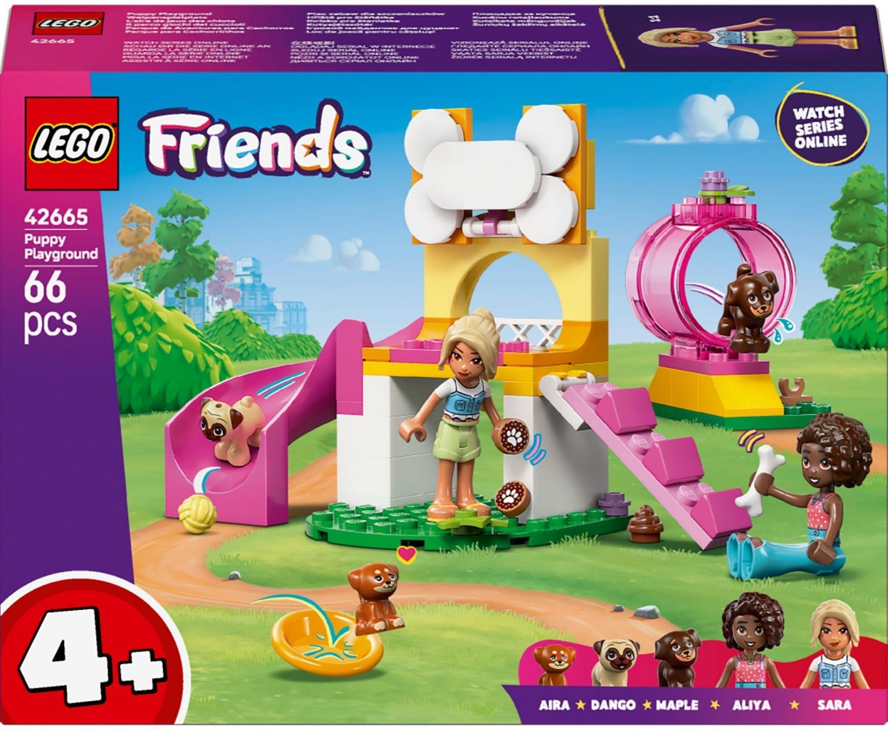 Конструктор LEGO Friends Ігровий майданчик для цуценят (42665) — чарівний набір для дітей від 4 років з мініляльками Алією та Сарою, 3 фігурками собак та аксесуарами для сюжетних ігор. Діти створюють майданчик з гіркою, драбиною, трубою, м’ячем, смаколиками та кувелдиком, щоб вигадувати історії про дружбу та догляд за цуценятами. Великі деталі полегшують збірку, а додаток LEGO Builder допомагає масштабувати та обертати моделі в 3D.