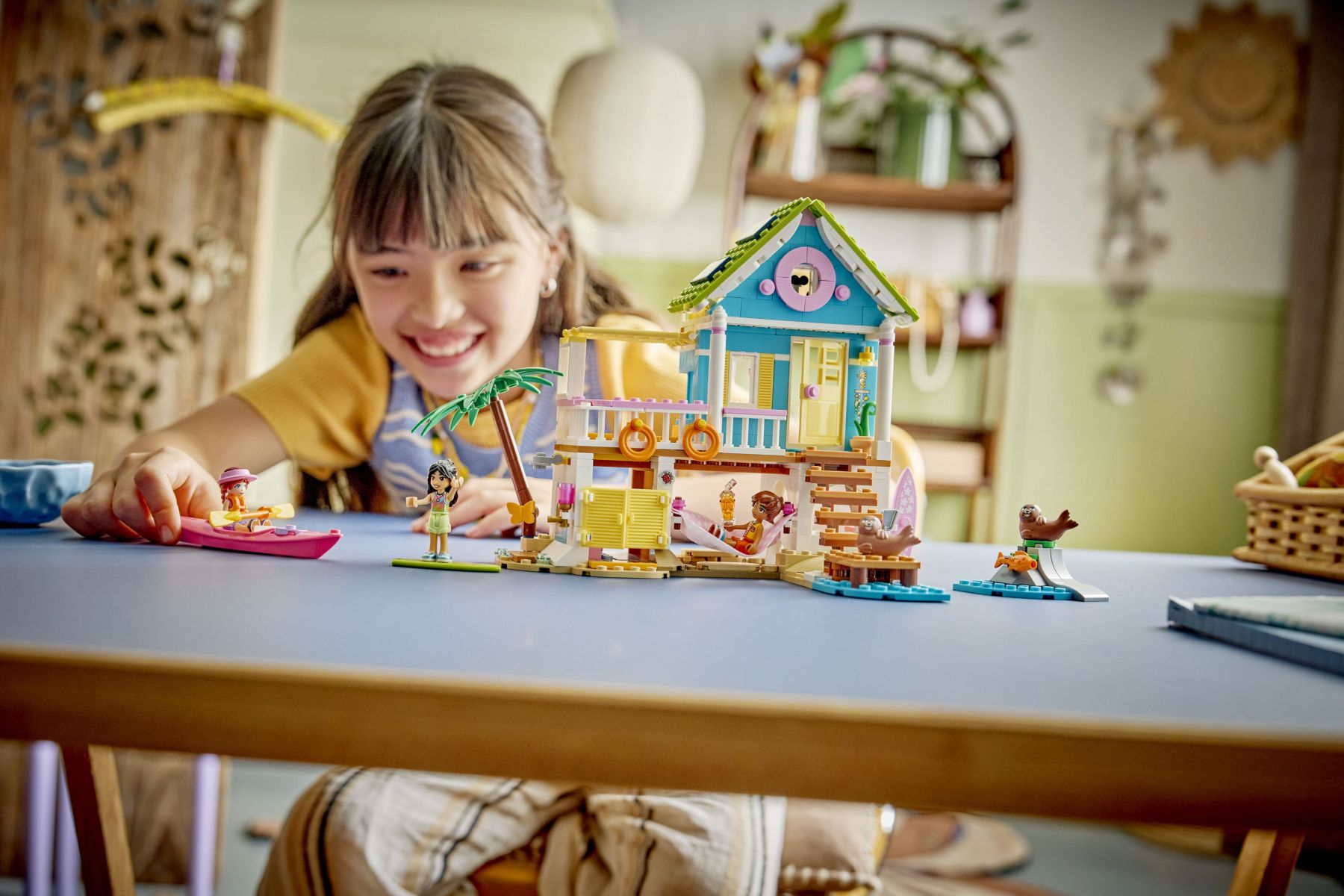 LEGO® Friends 42699 Пляжний будиночок з морськими котиками — це набір для творчих історій про відпочинок на узбережжі для дітей від 7 років. Усередині будиночка є кухня з блендером, спальня з трьома ліжками та затишна тераса. Зовні облаштована піщана зона відпочинку для тюленів і місце для пошуку «скарбів». У комплекті 3 мініляльки, 2 тюлені та багато аксесуарів для сюжетної гри. Інструкція доступна також у додатку LEGO Builder.