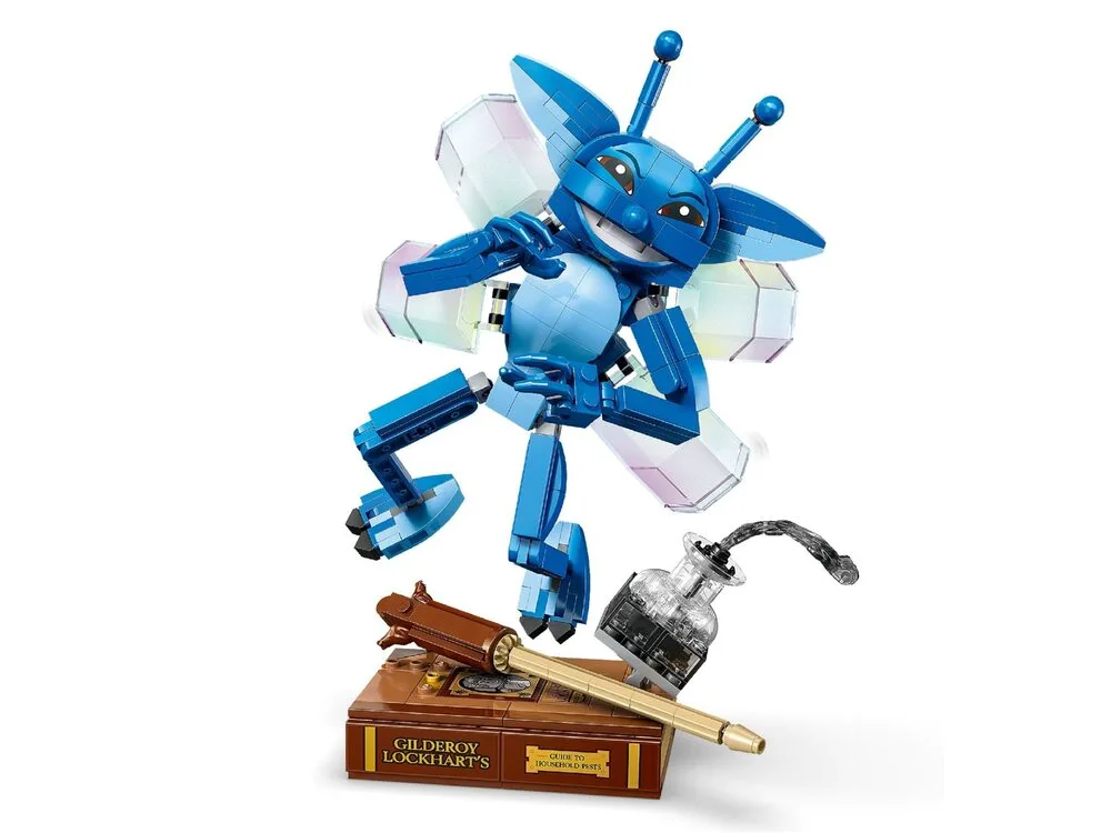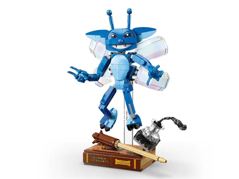 LEGO® Harry Potter™ 76461 Корнуельські піксі — перша модель цієї істоти у масштабі 1:1 з фільму «Гаррі Поттер і таємна кімната». Рухома фігурка має прозору підставку для пози в польоті або може стояти окремо. У комплекті аксесуари: книга Ґільдероя Локарта та пляшка чорнил, що розливаються. Модель підходить і для гри, і для демонстрації. У наборі 320 деталей та інструкції в LEGO Builder.