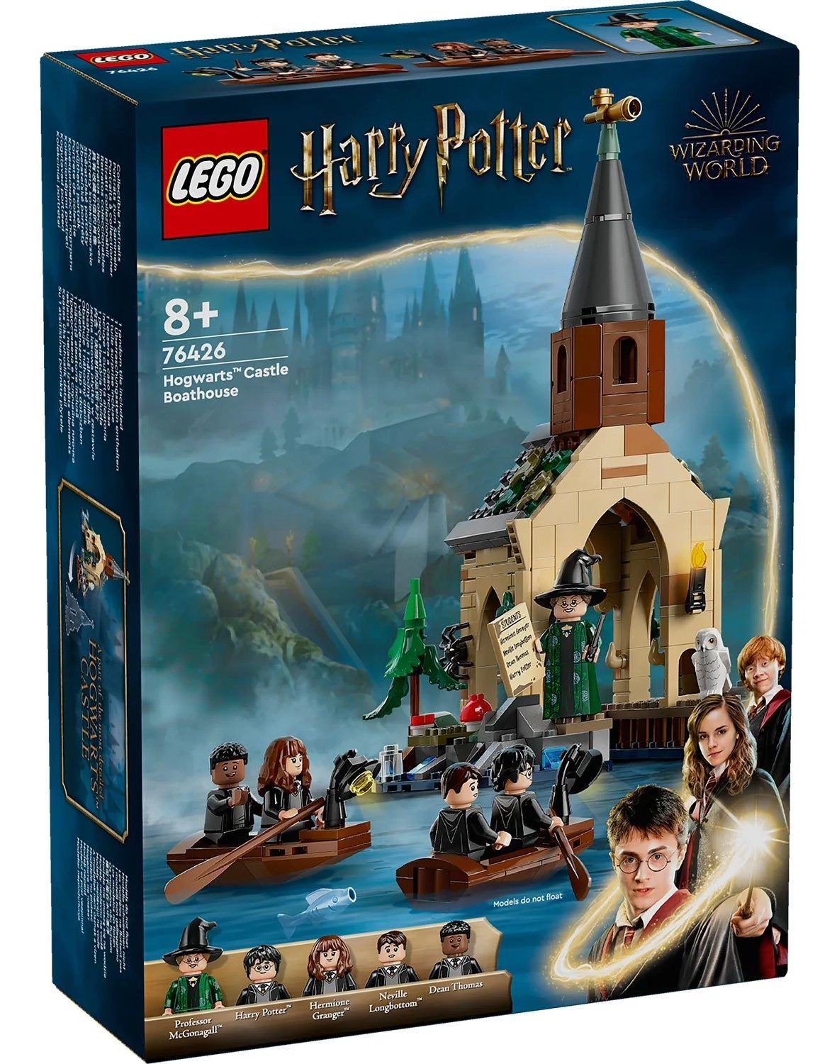 Завдяки цьому фантастичному конструктору для дітей наново проживайте пам'ятну сцену з фільму «Гаррі Поттер і філософський камінь», у якій Гаррі Поттер і його друзі вперше прибувають до човнового елінгу у замку Гоґвортс (76426). До набору входять два човни, кожен з яких має місце для двох мініфігурок, а також елінг з місцем всередині, де можна пришвартувати човен, схованка для жаби Невілла Лонґботтома, Тревора, і 1 з 14 колекційних портретів Гоґвортсу.