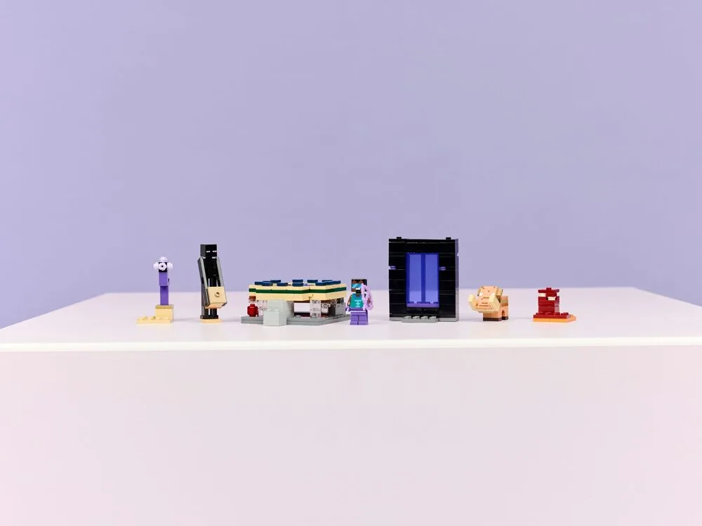 Цей LEGO® Minecraft набір дозволяє відтворити ключові портали з гри — путь у Нижній світ і до Краю, що відкриває двері до пригод для фанів відеоігри. У комплекті є 3 фігурки персонажів, включно з Cool Hero, Enderman і маленьким хоґліном, а також аксесуари, такі як чарівний лук і лікувальне зілля. Іграшка містить 192 деталі та призначена для дітей від 7 років і старше. Яскраві портали та елементи біомів надихають на сюжетну гру та творче конструювання.