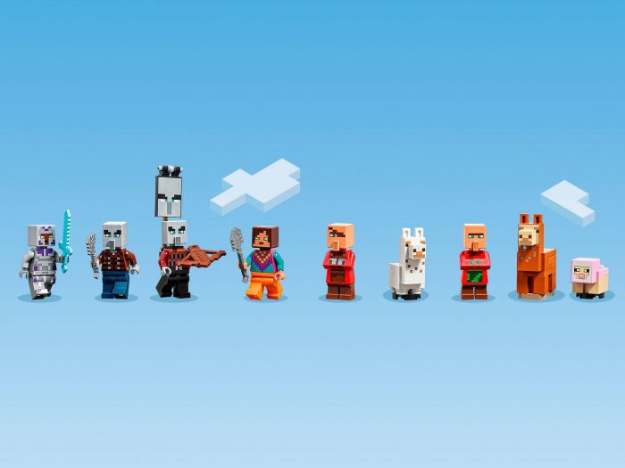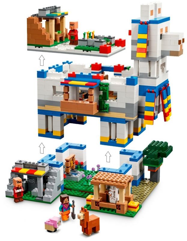 Випробуйте свої навички Minecraft® з цим величезним будинком, що відкривається, у вигляді лами! Зберіть ще більше крутих будівель навколо лами, між її ногами або навіть на спині. Відкрийте будинок-ламу, щоб досліджувати веселі кімнати усередині. Прикрасьте будинок, доглядайте за ламами, а якщо нападуть розбійники, потягніть за виступ ззаду голови великої лами і подивіться, як вона «плюється» у ворожих мобів!