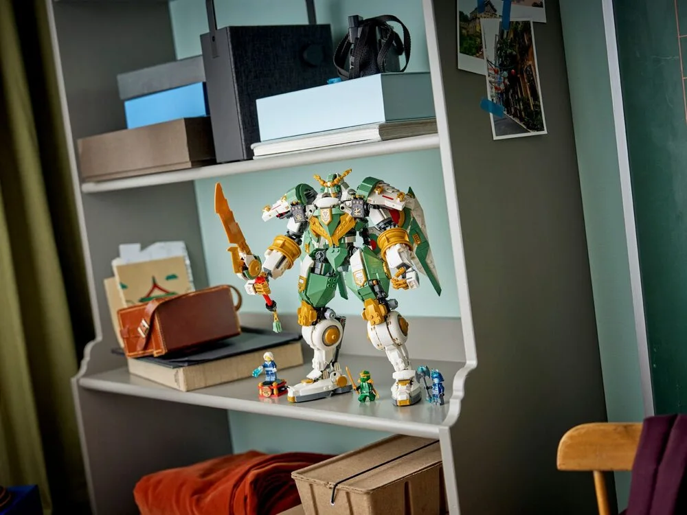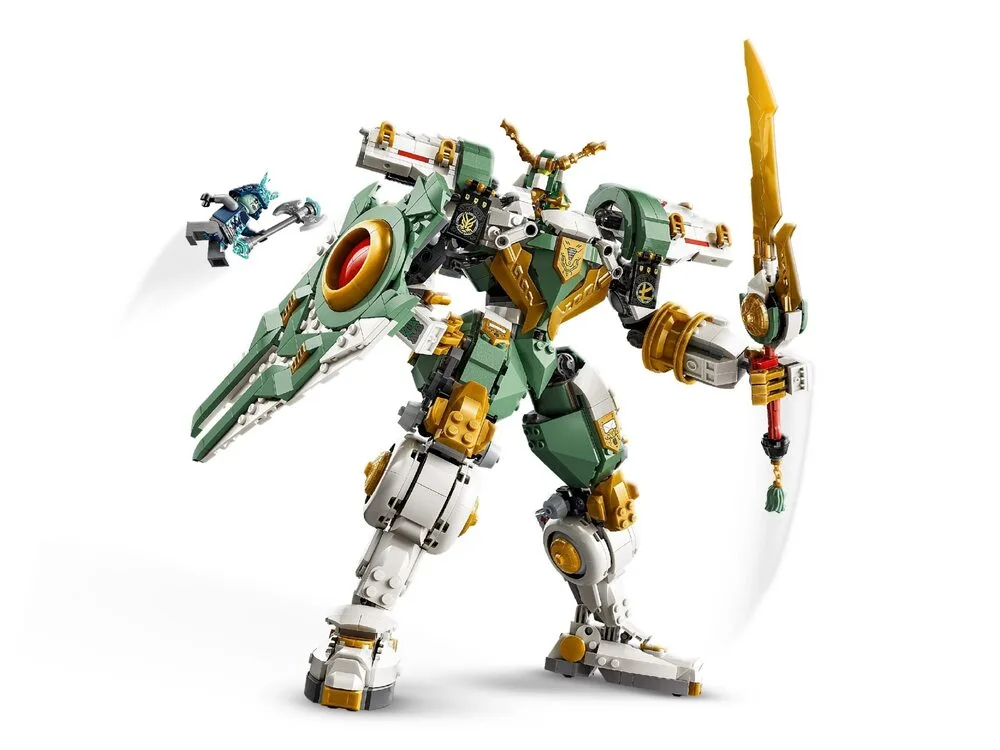 LEGO NINJAGO Робот‑титан Ллойда до 15‑річчя 71860 — оновлений робот-титан із серії LEGO NINJAGO, створений до 15-ї річниці франшизи. Модель має рухомі частини для установки динамічних поз та оснащена великим мечем і масштабним щитом, який можна перетворити на крила. У комплекті три мініфігурки: Ллойд, Гримфакс і Майстер криги на підставці. Набір складається з 1293 деталей і підходить для колекціонування та тематичного складання.