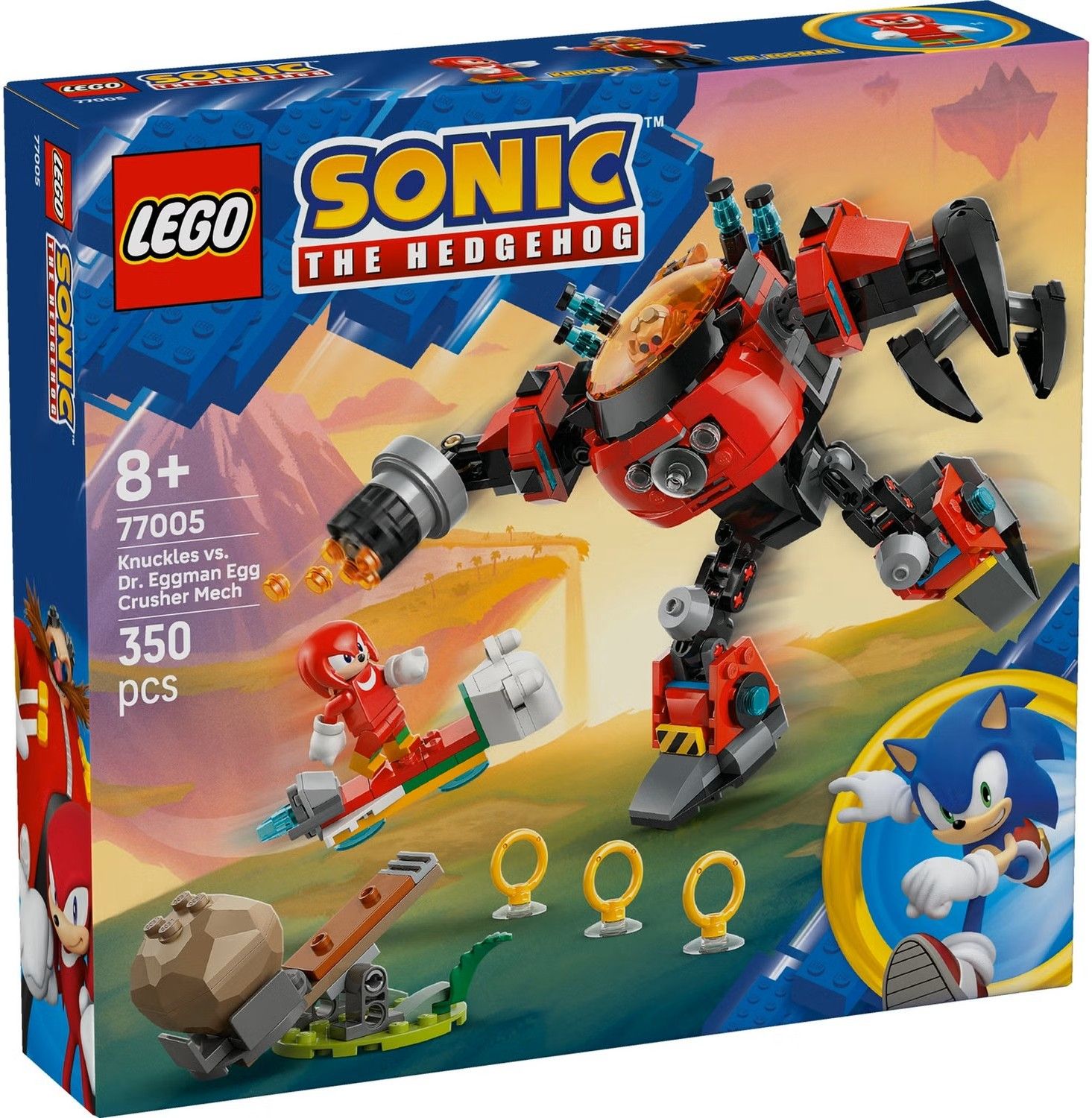 Зацікавте шанувальників іграшок серії Sonic, хлопчиків і дівчаток віком від 8 років захопливими пригодами в наборі Knuckles проти Dr. Eggman Egg Crusher Mech (77005) серії LEGO® Sonic the Hedgehog™, повному функцій і можливостей.