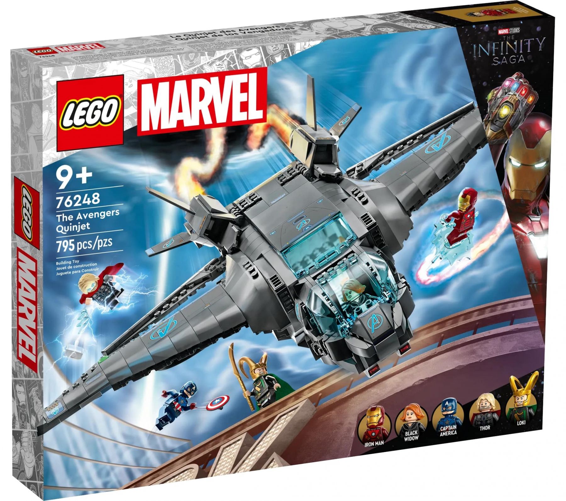 Летіть крізь космос на борту Квінджета за нескінченними пригодами Месників! Відкривайте верхню секцію і розташуйте Чорну Вдову, Тора, Залізну Людину й Капітана Америку на своїх місцях, доки Локі намагається потрапити на зореліт із запасного входу. Заховайте колеса й відрегулюйте положення крил — і ви готові до швидкісних супергеройських пригод!