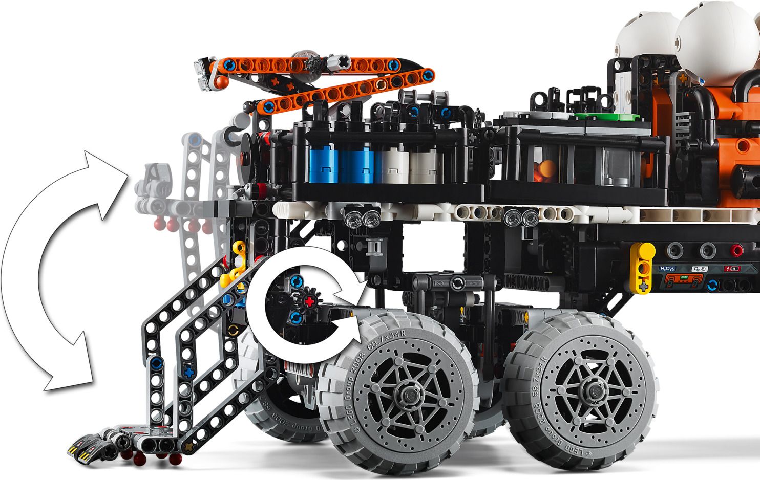 Модель розкладається, відкриваючи вантажну платформу, і діти можуть випробувати підвіску, скеровуючи марсохід на потрібну позицію.