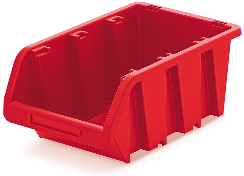 Компактний і міцний контейнер з пластику, підходить для зберігання дрібних предметів, з яскравим червоним кольором. Розмір 19,5x12x9см.