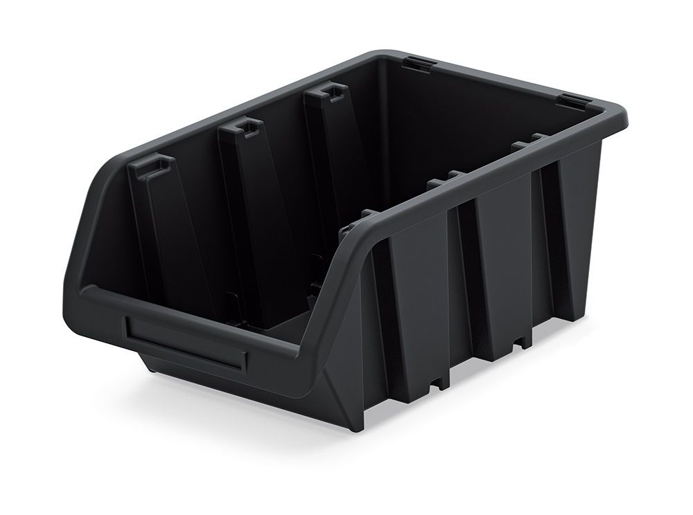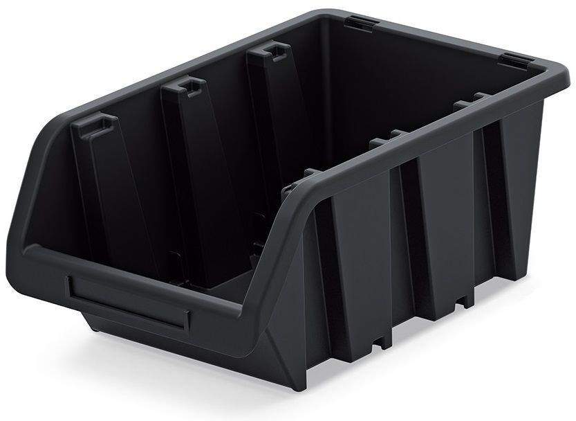 Компактний і міцний контейнер з пластику, підходить для зберігання дрібних предметів і інструментів. Розмір 23x16x12 см. Підтримує можливість підвішування на стіну за допомогою спеціальної планки чи дошки, а також легко штабелюється для компактного зберігання.