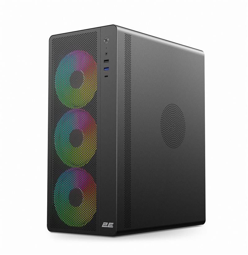 Корпус 2E GAMING Credo Plus V510B без БЖ, 1xUSB3.0, 1х USB 2.0, 1xUSB Type-C, 4x120мм RGB Rainbow, VGA 310мм, TG Side Panel, ATX, чорний