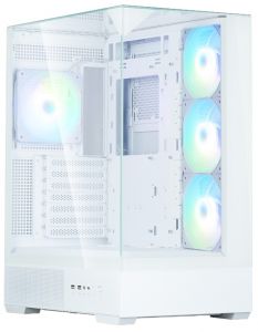 Панорамний корпус Zalman P40 PRISM PLUS WHITE для сучасної домашньої або ігрової станції, сумісний з актуальними компонентами та адаптований для BTF материнських плат. Передня, верхня та бічна панелі із загартованого скла. Забезпечено активне обдування компонентів за рахунок перфорації металевої поверхні панелей корпусу. Права бічна панель – суцільна металева сітка. Продумано захист від пилу. У комплекті 4 х 120мм ARGB вбудованих вентиляторів, концентратор і тримач для відеоадаптера. Вентилятори на бічній панелі – реверсні: забезпечують приплив повітря ззовні. Вентилятор на задній панелі працює на видуві. Корпус укомплектований усіма необхідними деталями для складання та подальшої експлуатації, є стандартні сучасні актуальні інтерфейси та роз'єми.