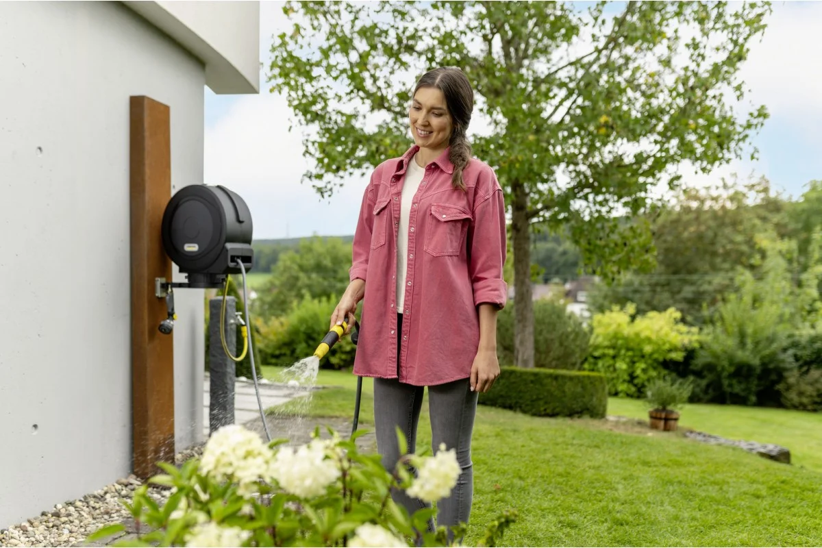 Автоматична котушка Kärcher HBX 5.35 забезпечує зручне зберігання та використання 35-метрового шланга 1/2". Потягнувши за кінець шланга, ви отримуєте потрібну довжину — він фіксується в будь-якому положенні. Для змотування достатньо легкого ривка — шланг акуратно намотується самостійно без перегинів і вузлів. Котушка поворачується на 180° і легко знімається зі стіни завдяки системі FlexChange. Міцні матеріали та морозостійкість дозволяють залишати її на стіні цілий рік.