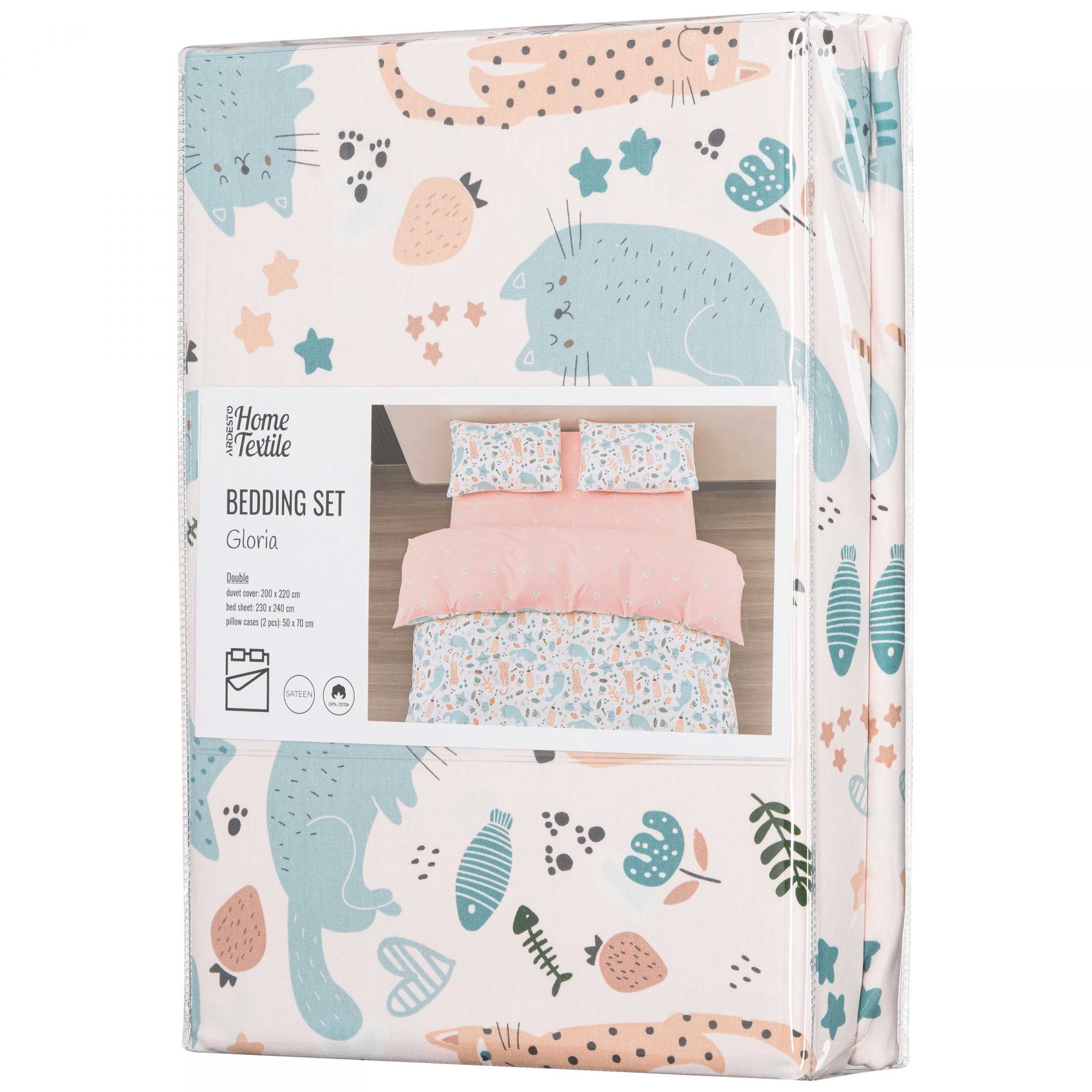 КПБ 2,0сп Ardesto Gloria, підковдра 200х220см, простирадло 230х240см, наволочки (2) 50х70см, 100% бавовна, сатин, коти персиковий