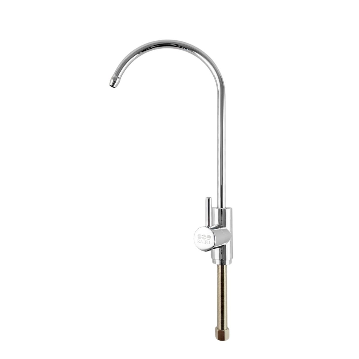 Кран чистої води F-09 Raifil Slim призначений для подачі очищеної води після побутових систем фільтрації. Виготовлений з латуні з хромованим покриттям та оснащений керамічним перемикачем. Монтується на кухонну мийку або стільницю. Підключається до систем очищення води через різьбове з’єднання 1/4".