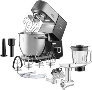 Кухонна машина Sencor Paul 3 STM8950 - це потужний помічник на вашій кухні, який відмінно підходить для різних кулінарних завдань. Вона має суцільнометалевий корпус з металевими шестернями, світлодіодну панель управління з програмами, ємність об'ємом 6,7 л, 4 насадки для замішування, збивання та рідкого тіста, м'ясорубку для грубого і дрібного подрібнення м'яса і світлодіодне підсвічування ємності для змішування.