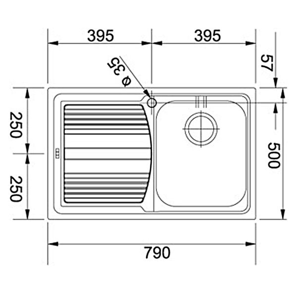 Кухонна мийка Franke Logica Line, нержав. сталь полірована, прямок. з крилом,790х500х195 мм, чаша- 1накладна, LLX 611-79, хром