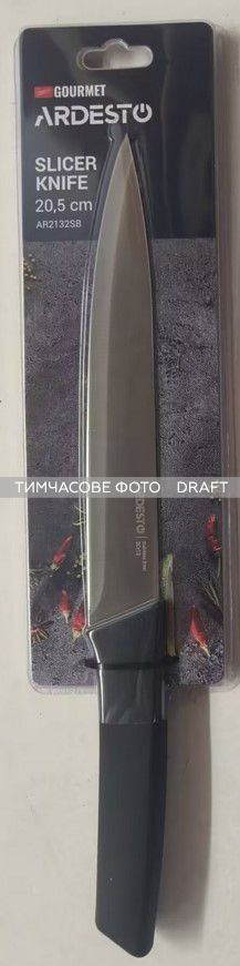 Кухонний ніж слайсерний Ardesto Gemini Gourmet, 20.5см, нержавіюча сталь, пластик, чорний
