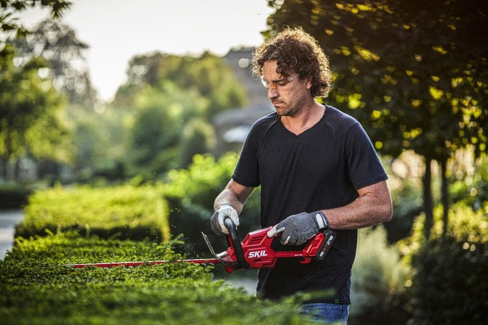 «20V Max» (18 В) SKIL 0438 – це акумуляторний кущоріз, призначений для підстригання живоплотів і кущів. Він входить в асортимент безщіткових інструментів SKIL, що пропонує неперевершене співвідношення ціни та якості. Наш безщітковий двигун швидший, потужніший і працює в 10 разів довше, ніж звичайний щітковий двигун.