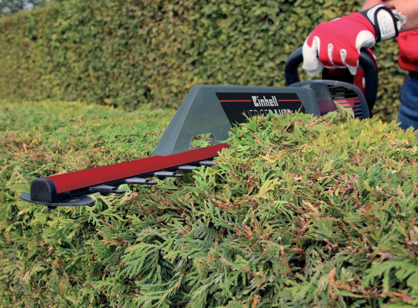 Електричний кущоріз Einhell GE-EH 6560 на 650 Вт для швидкої та точної обрізки живоплотів і кущів. Довжина різання 600 мм, частота до 3000 різів за хвилину та крок між зубами 30 мм забезпечують чистий зріз і високу продуктивність. Лазерно-вирізані й алмазно-шліфовані ножі працюють у парі з металевим редуктором для довговічності. Додаткова передня ручка і поворотна задня рукоятка з Softgrip покращують контроль та знижують втому.