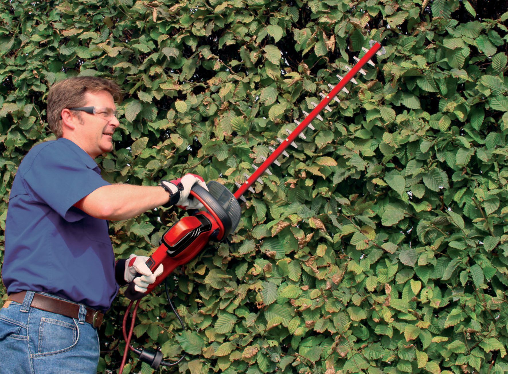 Особливості:додаткова рукоятка, металевий редуктор, щит для захисту рук, лазерне заточування, алмазне шліфування ножів, дворучний запобіжний вимикач із зупинкою ножів < 1 сек., м'які накладки Softgrip, кабельний затискач від натяжіння кабелю, поворотна задня рукоятка