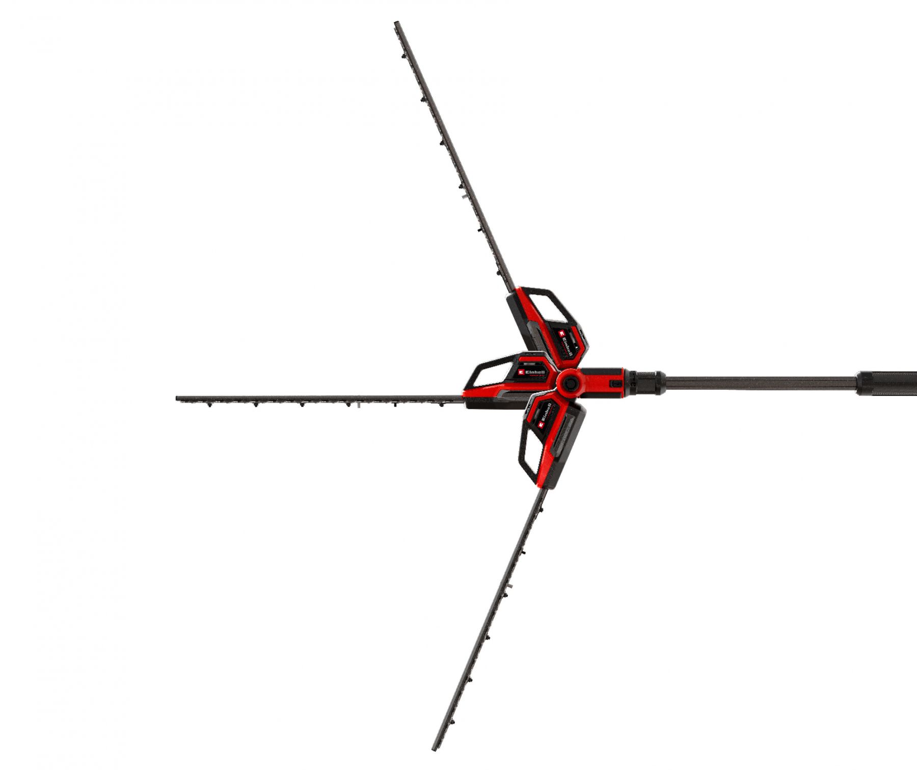 Акумуляторний телескопічний кущоріз Einhell Professional GP-HH 18/50 Li T BL-Solo (Power X-Change 18 В) з безщітковим двигуном для догляду за високими живоплотами. Штанга 220–290 см (швидке регулювання без інструментів), 8-позиційна ріжуча головка; лезо 50 см з кроком 25 мм та антиблокувальною системою. Міцний металевий редуктор, захисний чохол у комплекті, ударозахист АКБ сталевою рамою. Без акумулятора та зарядного пристрою.