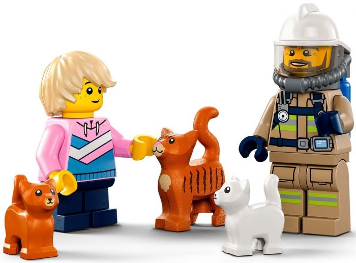 Приєднуйся до Clemmons та Feldman із LEGO® City TV на палаючій міській фабриці сардин. О ні — секретний соус виливається з чану! Що це за інгредієнти? Захопи захисний костюм й досліди їх! Ой! Пожежник застряг у верхній частині будівлі, рятуючи миле кошеня! Швидше неси рятувальну сітку! Направ шланг на вікна, щоб загасити полум’я коли вони стрибнуть. Готуйся до роботи!