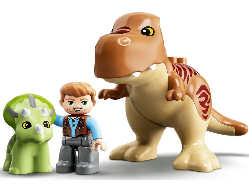 У наборі «Втеча динозаврів: тиранозавр і трицератопс» LEGO® DUPLO® Jurassic World (10939) вас чекає безліч цікавих функцій і пригод з фільму «Світ юрського періоду», так що діти, які люблять динозаврів, будуть ревіти від захвату.