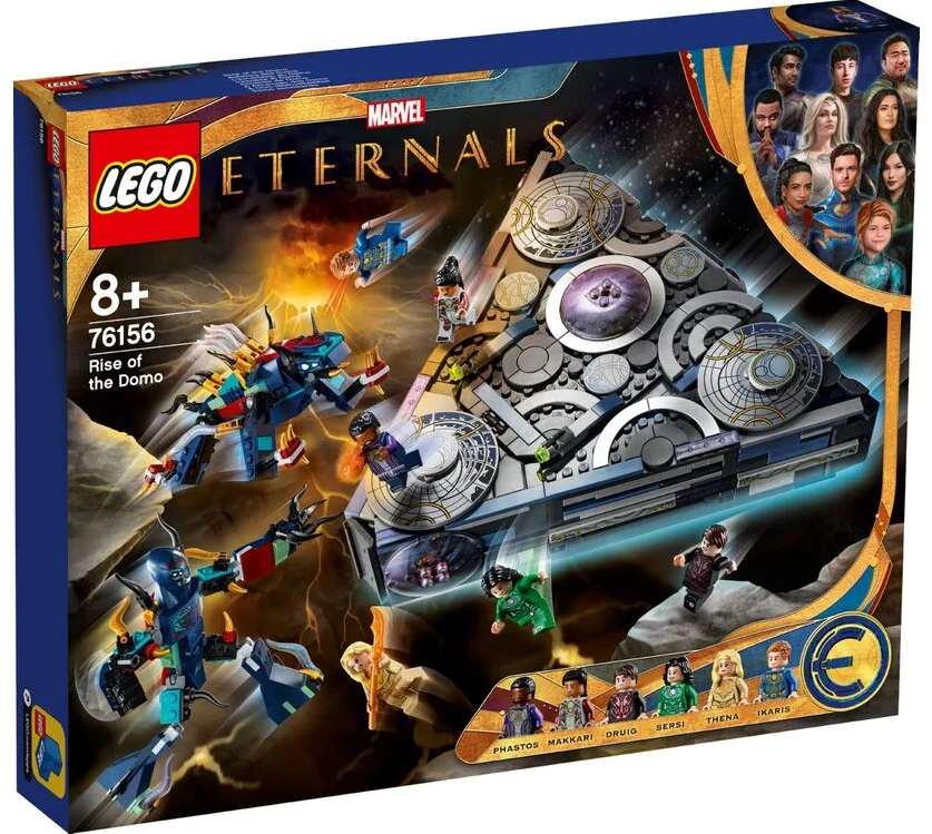 Граючи з набором «Зліт Домо» LEGO® Marvel (76156), діти зможуть досліджувати продуманий до найдрібніших деталей інтер'єр корабля Вічних, а потім відтворити вирішальну битву за допомогою шести мініфігурок супергероїв і двох фігурок злісних девиантов.