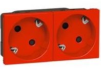 Блок розеток електричних MOSAIC Legrand 2хSchuko під кутом 45° (16А, 250В, автоматичні клеми) 4мод, червоний