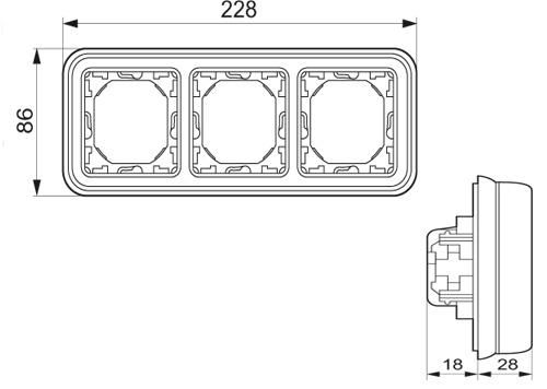 Додатково:ступінь захисту IP 55 - IK 07, коробки для накладного монтажу, супорти для вбудованого монтажу, програма Plexo, установка горизонтальна, відстань між точками кріплення - 71 мм, трипостовий супорт із рамкою для трьох механізмів Plexo