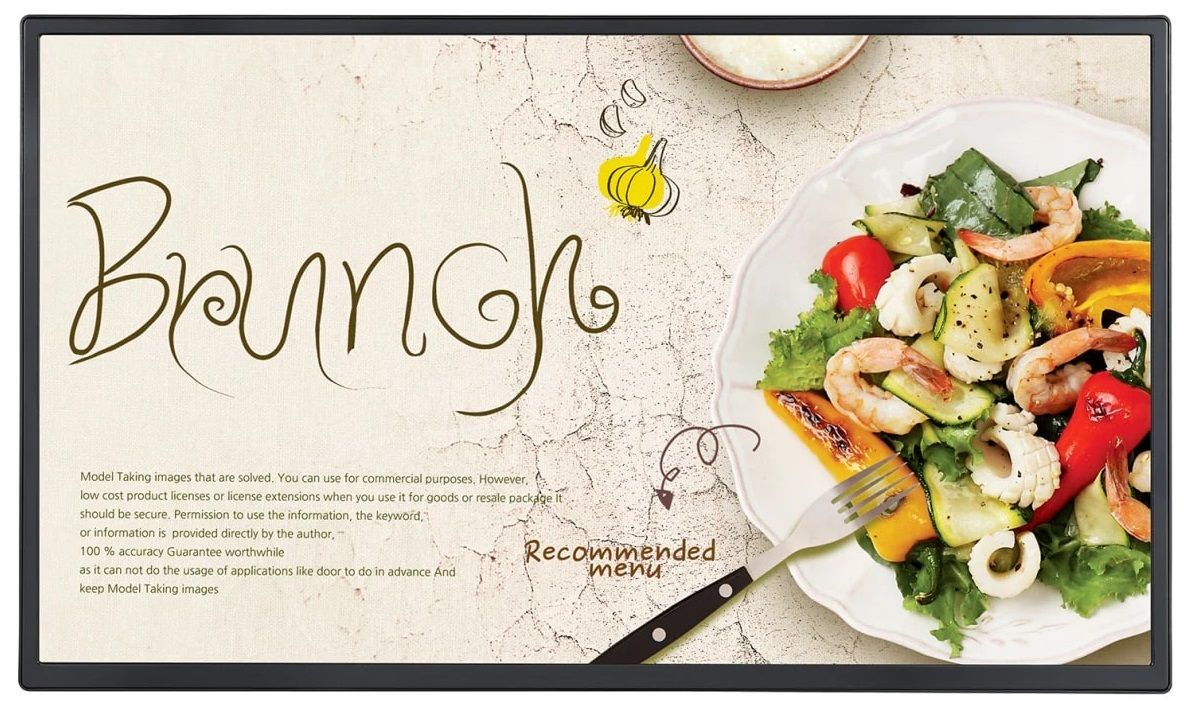 Професійний Full HD РК-дисплей з діагоналлю 32″, яскравістю 400 кд/м² та режимом роботи 24/7, може встановлюватися вертикально та використовуватись для розміщення реклами, інформування відвідувачів в якості меню-бордів.