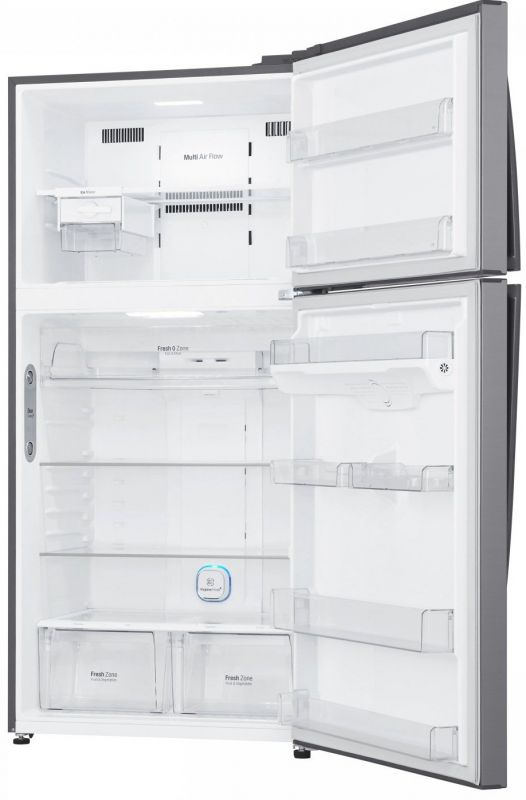 Холодильник з верхн. мороз. камерою LG GR-H802HMHZ, 184х73х86см, 2 дв., Холод.відд. - 418л, Мороз. відд. - 174л, A++, NF, Інв.,Зона свіжості, Зовнішн. диспл., Сірий