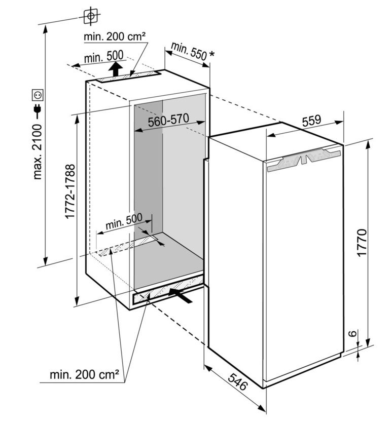 Вбудований однокамерний холодильник Liebherr 55.9 x 177 x 54.6см, 1 дв., Х- 257л, М- 27л, A+, NF, Білий