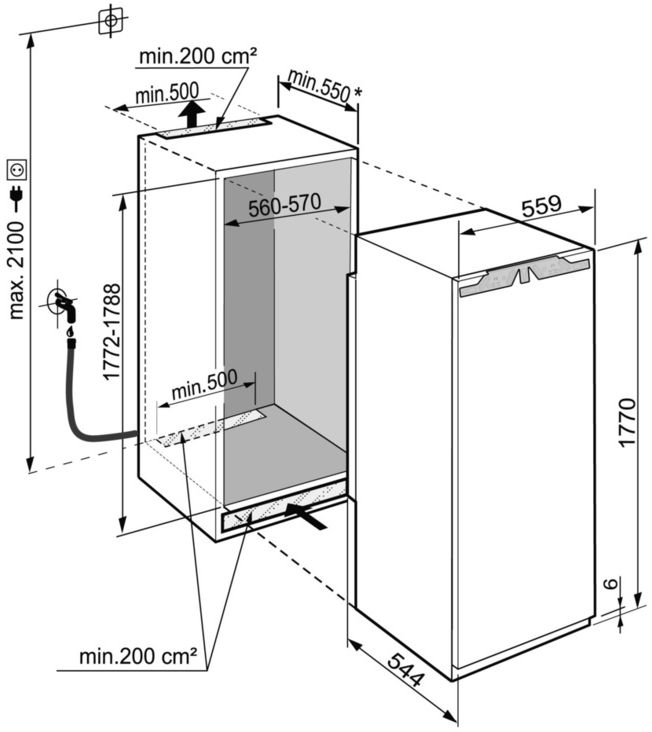 Розміри для вбудовування ( ВхШхГ ):1772 - 1788 / 560- 570 / 550