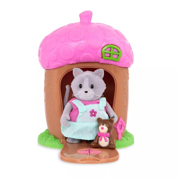 Ігровий набір Li'l Woodzeez Будиночок c сюрпризом (рожева дах, 1 фігурка котика, 1 аксесуар)