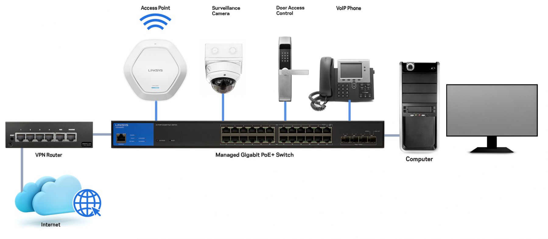 Керований гігабітний комутатор LINKSYS LGS352MPC з 48 портами Gigabit Ethernet PoE+, 4 гігабітними каналами висхідного зв'язку SFP+ 10 Гбіт/с та загальним бюджетом потужності PoE 740 Вт є універсальним рішенням для управління пристроїв у мережах бізнес-класу, забезпечення безпеки, швидкості та якості обслуговування.