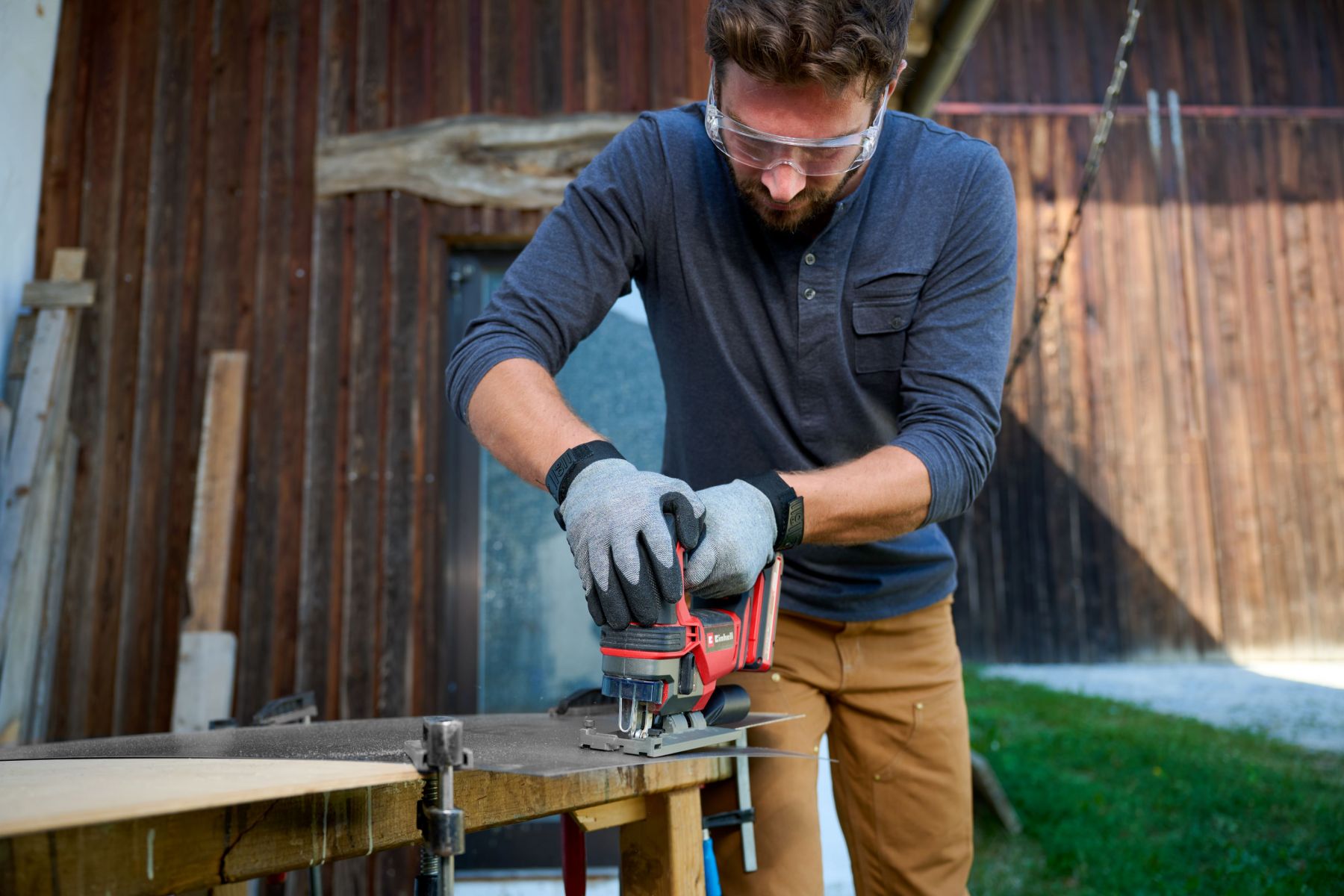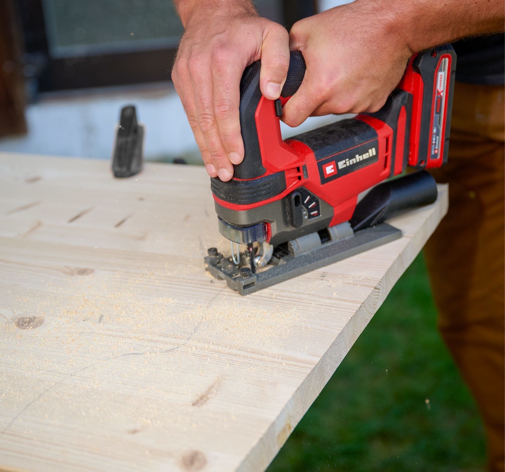 Акумуляторний лобзик Einhell TE-JS 18/100 Li-Solo підходить для точного різання дерева (до 100 мм), сталі (до 12 мм) і скошених різів до 45°. Оснащений маятниковим ходом, підсвічуванням, функцією здування пилу, захистом від сколів та швидкознімним кріпленням пилок (U- та T-хвостовик). Поставляється з пилкою для дерева та паралельною напрямною. Акумулятор і зарядний пристрій не входять у комплект.