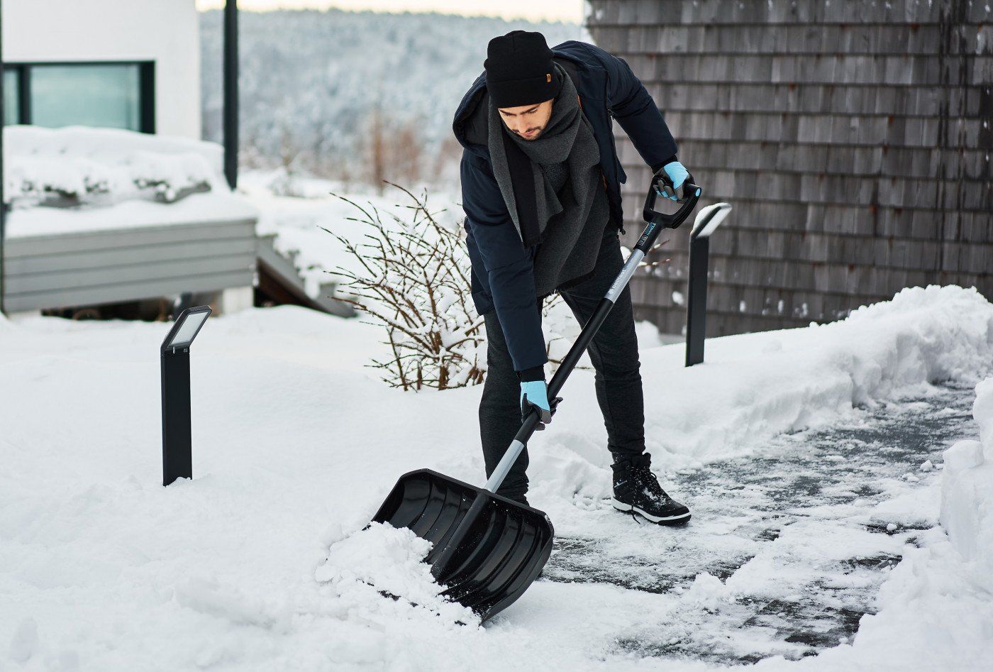 Снігоприбиральна лопата ENERGO - інструмент для прибирання снігу з великих, навіть нерівних поверхонь, виготовлений із матеріалу, стійкого до низьких температур. Нековзкий матеріал SAFETOUCH гарантує зручне захоплення та захищає руки від замерзання під час прибирання снігу.