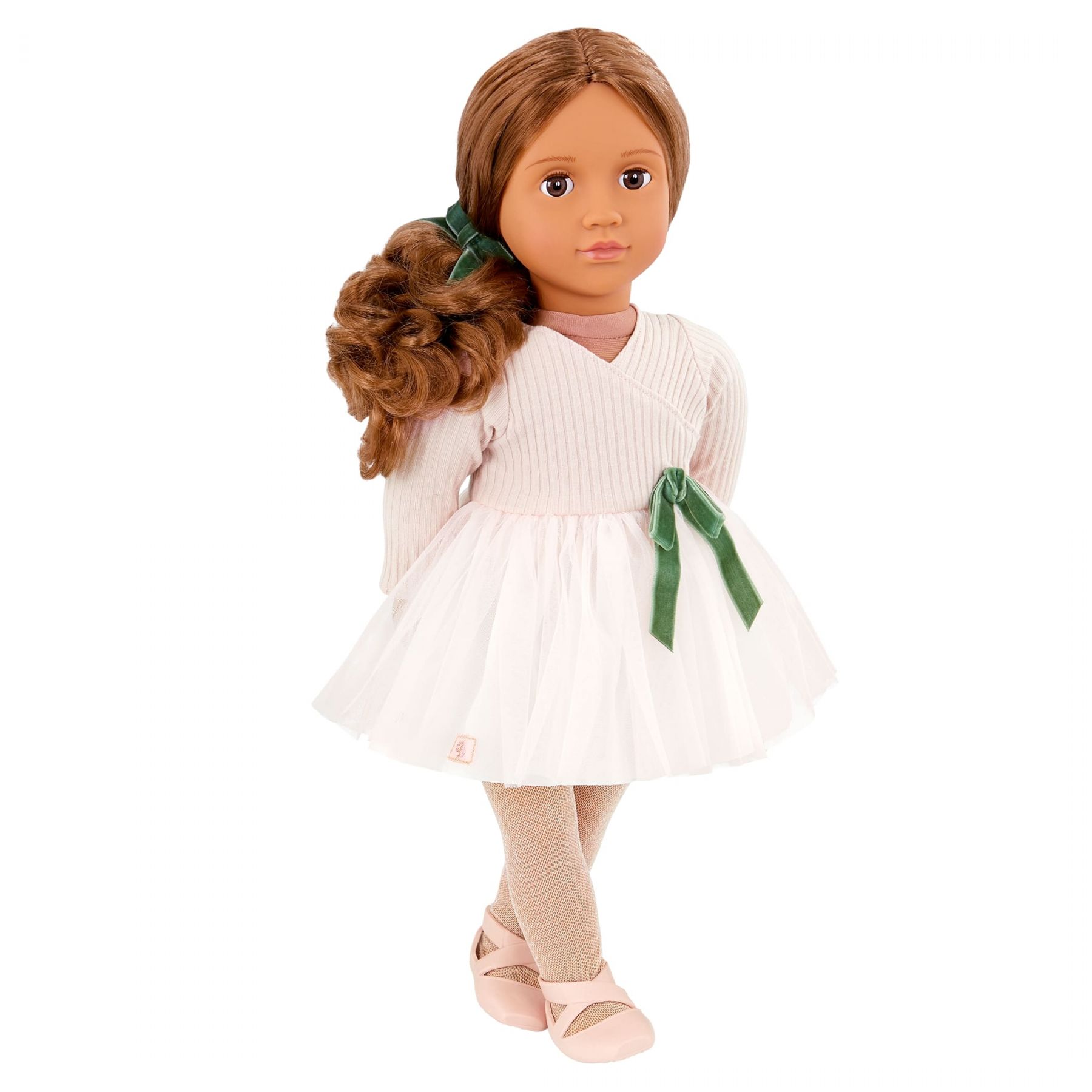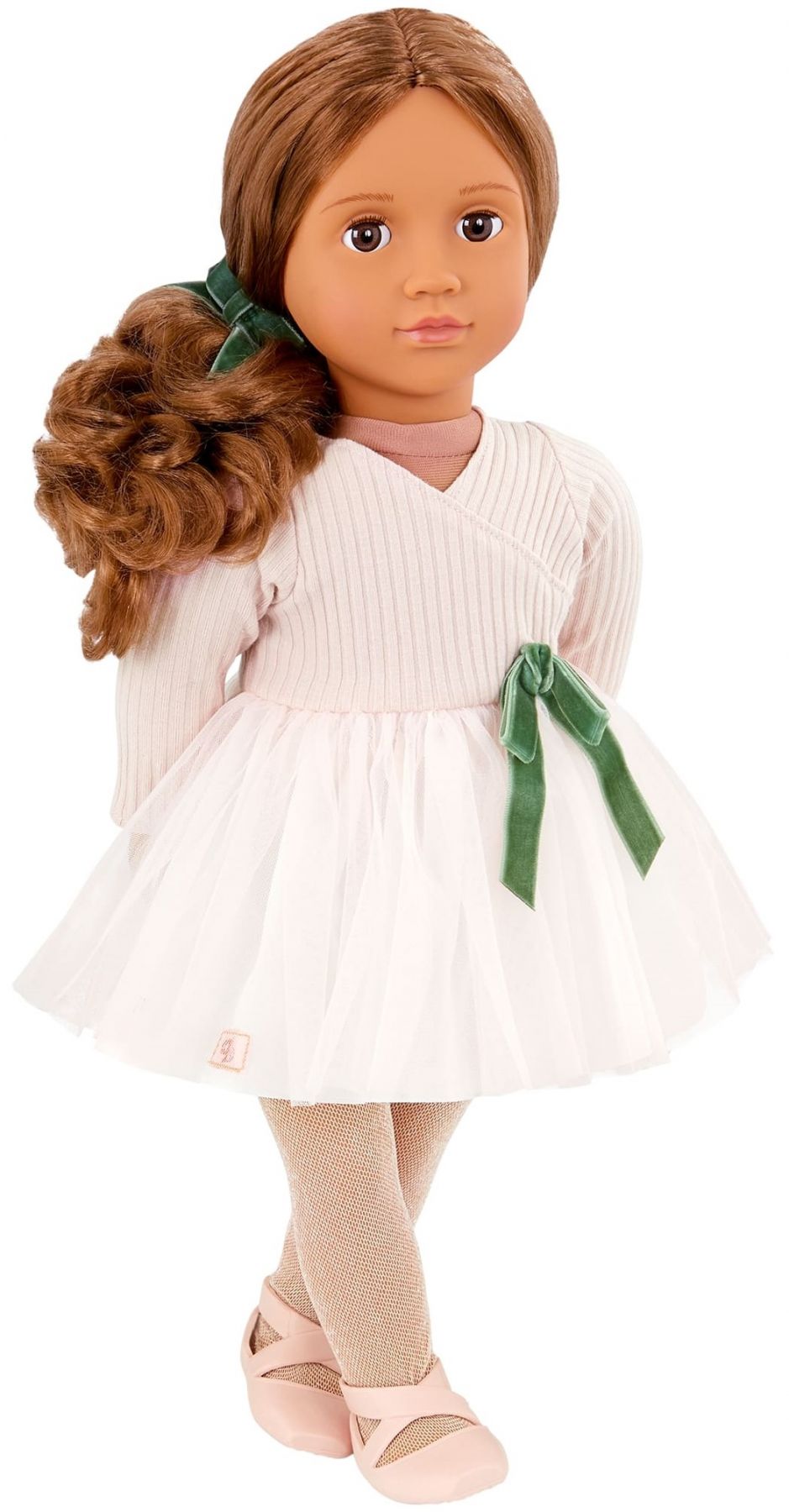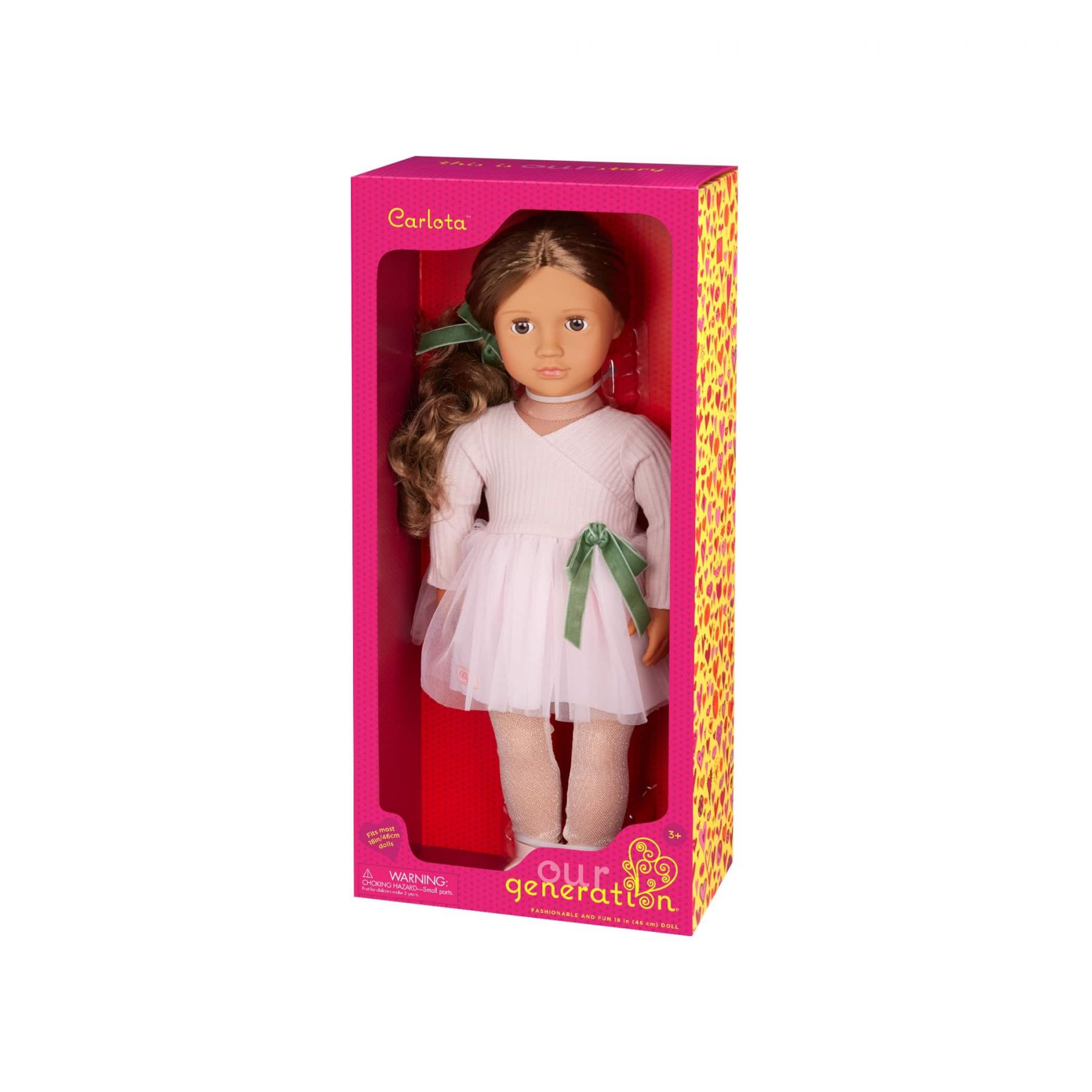 Лялька Our Generation Карлота у балетній сукні - натхнення для маленьких балерин! Пориньте у світ чарівного танцю разом із Карлотою – лялькою-балериною, яка надихає юних танцівниць! Вона має реалістичні риси – гарні карі очі, що відкриваються та закриваються, а також довге хвилясте каштанове волосся, яке можна розчісувати та укладати перед кожним виступом.