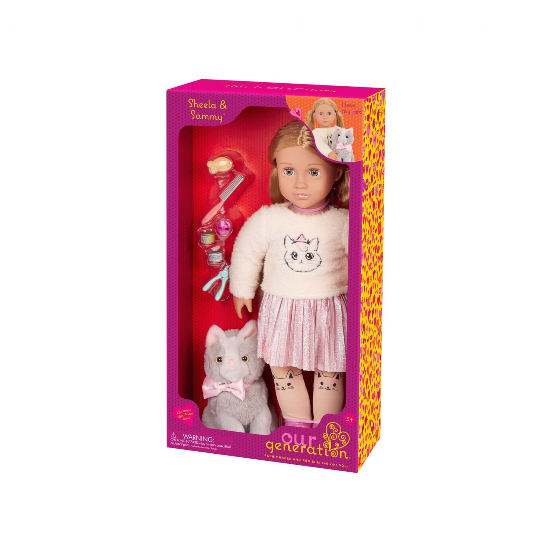 Познайомтесь із Шилою та її пухнастим другом Семмі — чудовим дуетом, який захопить серце кожної дитини. Ця ігрова лялька Our Generation висотою 46 см має м’яке тіло для обіймів, реалістичні карі очі, які відкриваються та закриваються, і довге темно-русяве волосся, яке можна розчісувати та укладати в різноманітні зачіски. Її найкращий друг — милий плюшевий кіт, який обожнює увагу.