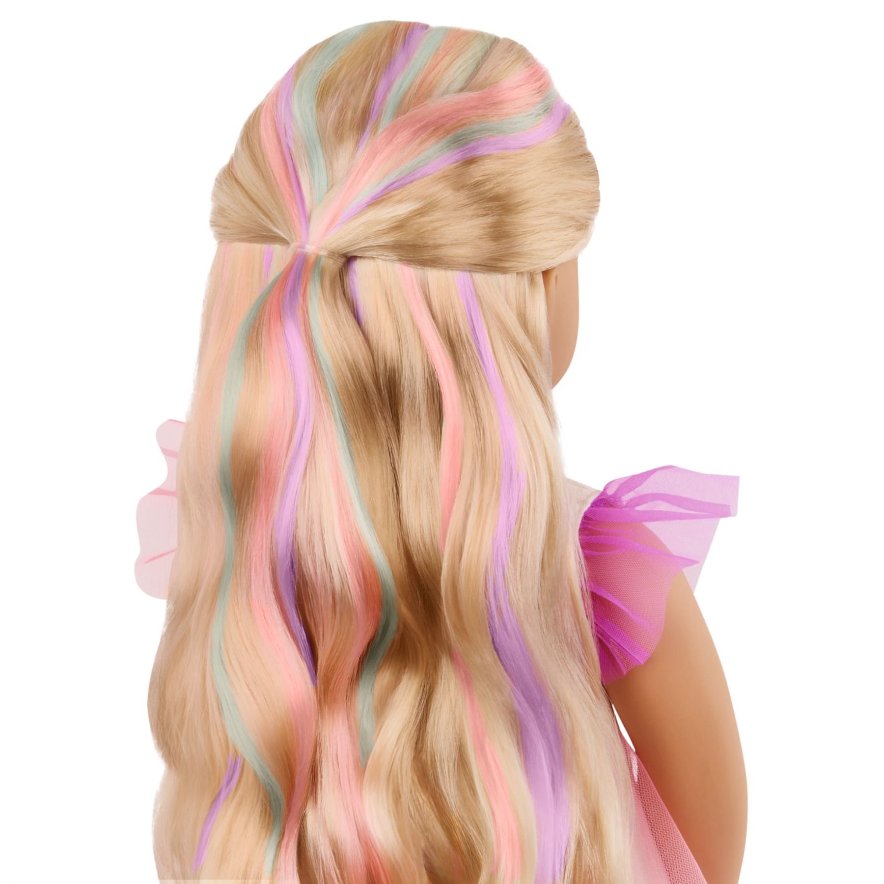 Заплітай, грай та створюй казкові зачіски разом із Тессі від Our Generation! Ця яскрава 46-сантиметрова лялька має неймовірне веселкове волосся, яке можна укладати, прикрашати та навіть подовжувати або вкорочувати натисканням однієї кнопки! Тессі — справжня зірка зачісок, яка надихне дітей на творчість і самовираження.